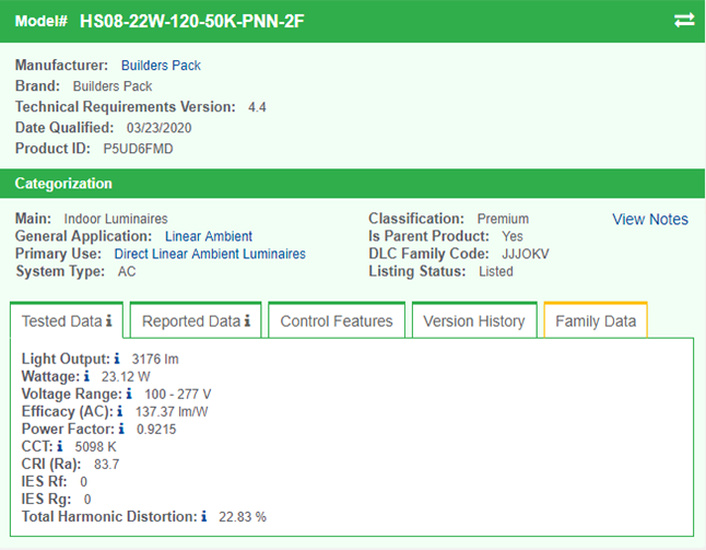 | 30-26011-XX | HS08-18W-120-XXK-PNN-F | 4' | 18W | 30K,35K,40K, 50K | 130 lm/W | 2340lm | 85 | 100-277V | Spec Sheet |