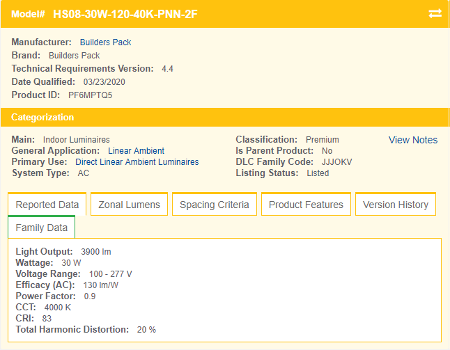 | LU08004-X | HS08-30W-120-XXK-PNN-2F | 4' | 30W | 30K,35K,40K, 50K | 130 lm/W | 3900lm | 85 | 100-277V | Spec Sheet |